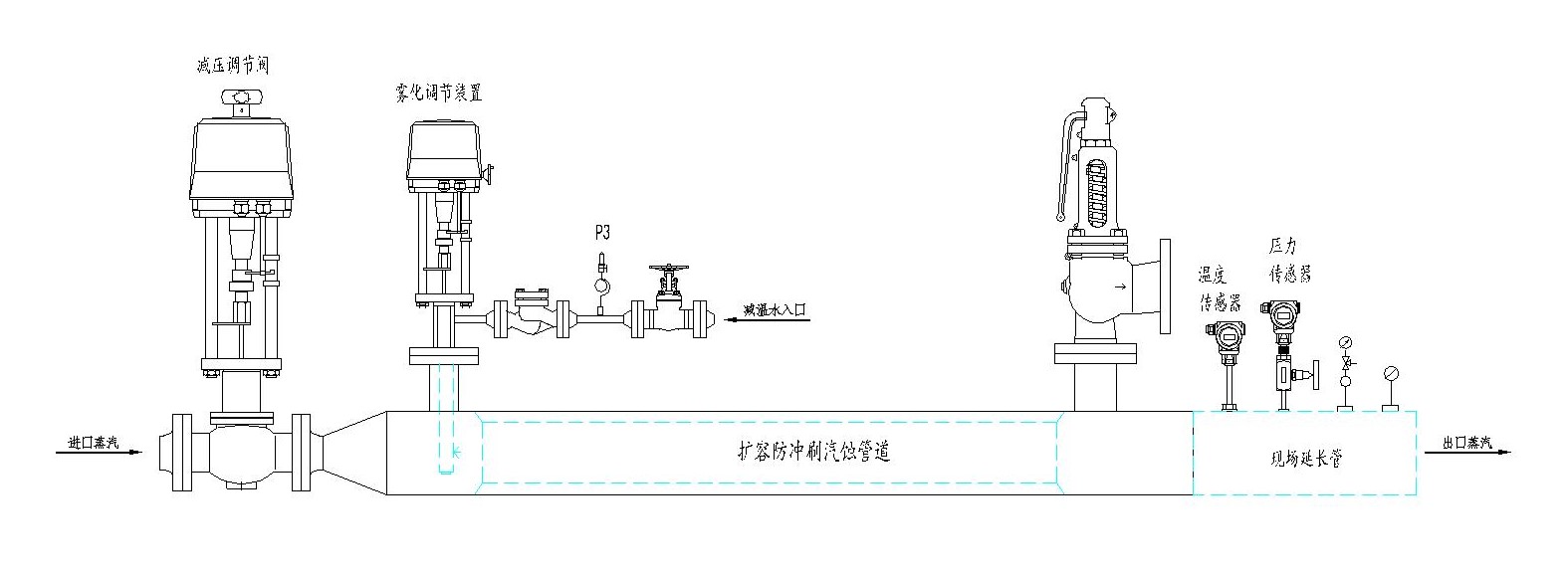 1、 減壓系統(tǒng)主要由減壓調(diào)節(jié)閥及執(zhí)行機(jī)構(gòu)、阻力裝置,擴(kuò)容管道以及安全閥等組成,是將高壓蒸汽減壓至用戶所需壓力;